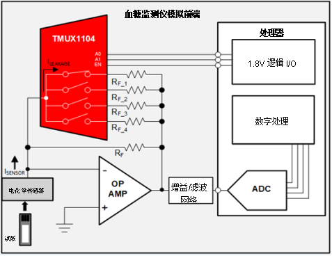 设计精确的血糖监测仪时,无需权衡系统的精确性或稳定性。只需在传感器前端选择一个具有极低泄漏电流、低CON并采用小封装的精密多路复用器即可。
