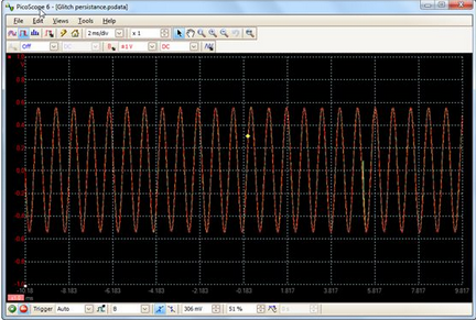 PicoScope余辉模式对于捕获不必要的点或者音频信号故障是非常有用的。在普通示波器的显示中,这些信号在屏幕上仅仅只有几分之一秒,所以很难进行准确的测量。余辉模式会导致旧波形在后台保持,同时新波形在上面继续更新。