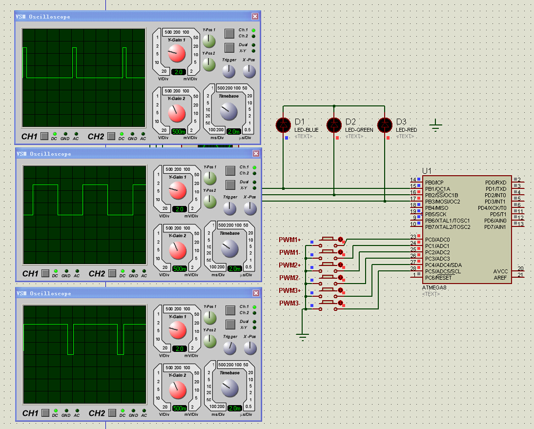2019年10月23日 | AVR单片机三路PWM程序+仿真电路