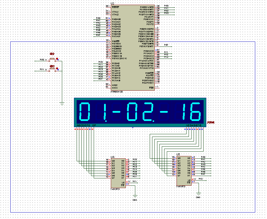 DDRF |=0X03; //LED及数码管锁存IO口设为输出