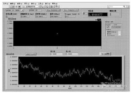 设计的采集程序界面如图3所示,当点击开始,设置每秒钟的采样点数与间隔时间(积分时间),点击开始存储文件后就开始采集数据显示并存储。可以根据即时波形图与整体波形图来得到测量电压的信息。