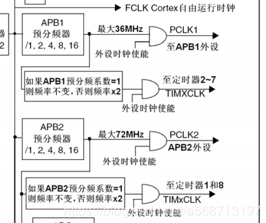 可以看出,串口1挂载在APB2总线上,而串口2、3(4、5)都挂载在APB1总线上,而时钟树告诉我们: