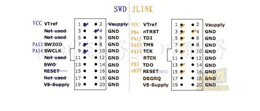 我们比较常用的是Jlink下载器 ,这种下载器有一个缺点就是使用的Jtag 20PIN接口,太多的PIN会导致一些小型的PCB板很拥挤,也会增加布线的难度。 而使用SWD接口下载调试,只需要要使用4个PIN: GND, RST, SWDIO, SWDCLK ,而且下载速度可以达到10M/s,优势显而易见。