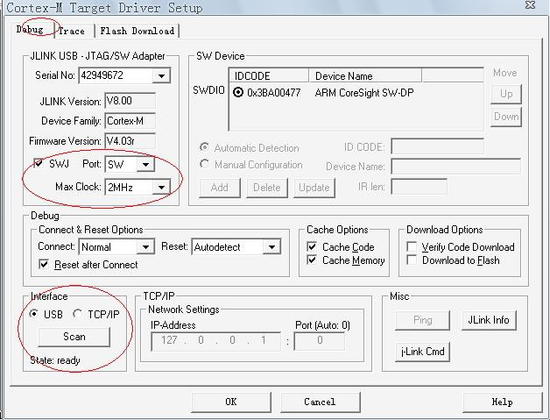 (3) JLINKV8 非常好的支持 SWD 仿真模式, 速度可以到 10M。