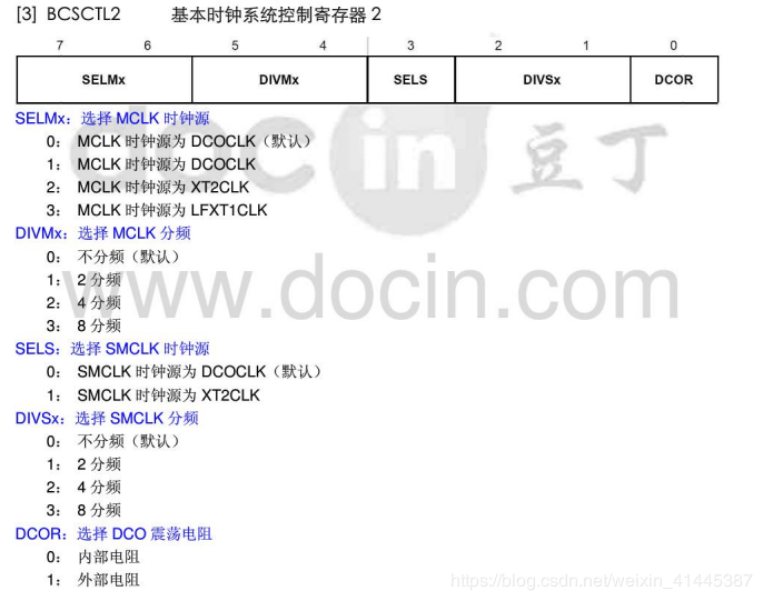 3-SMCLK: 子系统时钟,SMCLK 是由 2 个时钟源信号所提供。他们分别是XT2CLK(F13、F14)和DCO,如果是F11、F11X1则由LFXT1CLK代替TX2CLK。同样可设置相关寄存器来决定分频因子及相关的设置。