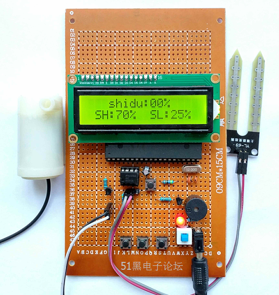 自动浇水,检测湿度,湿度上下限值可调,自动与手动模式!