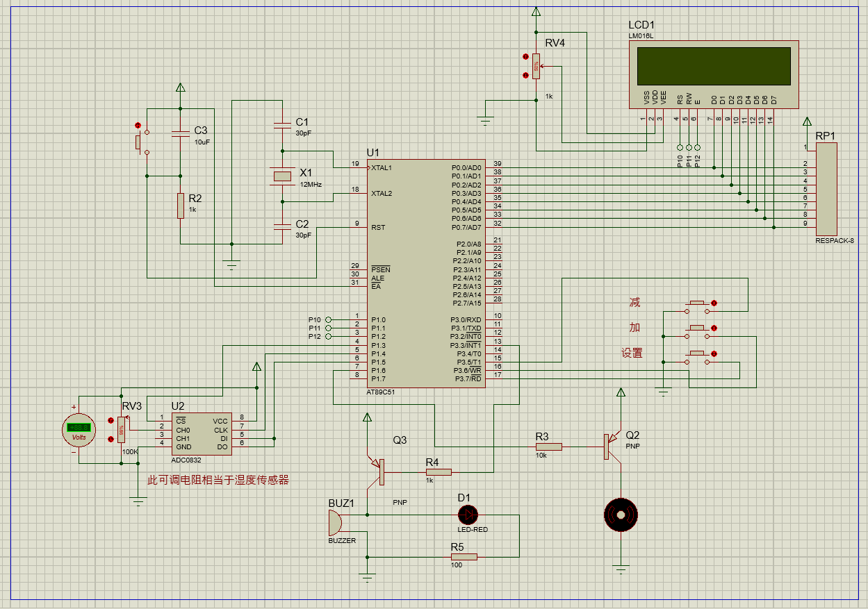 4.可以设置湿度和温度的上下限报警范围,并具有掉电保存功能,保存在STC单片机内部,上电无需重新设置。