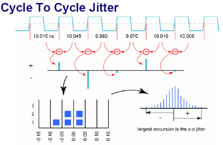 周期抖动(period jitter)的微分可以得到cycle-cycle jitter。