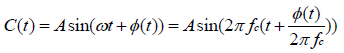 其中C(t)表示总的信号,Φ(t)表示调制其上的相位噪声。将Φ(t)与周期/频率结合起来可以得到TIE抖动的表示为: