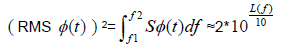 频率f1到f2的相噪频谱积分可得到相噪Φ(t)的RMS值的平方(RMSΦ(t))2: