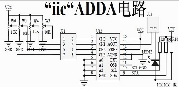 内容:此程序通过IIC协议对DAAD芯片操作,读取电位器的电压,并输出模拟量,用LED亮度渐变指示,晶体选用12MHz