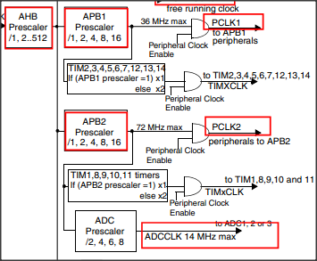 /*AHB = 72MHz,RCC_CFGR的PPRE1 = 2,所以APB1 = 36MHz,TIM2CLK = APB1*2 = 72MHz */