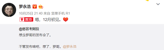 值得一提的是,罗永浩近日表示将于12月初召开发布会,但是此次发布会跟手机没关系。