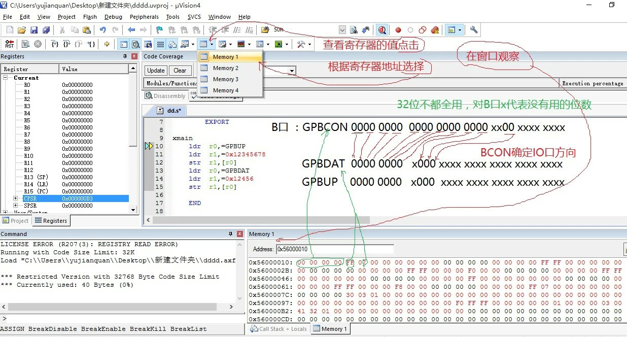 str r1,[r0] ;把方向控制数据赋值给A口方向寄存器0x56000000
