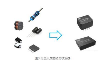 具体来讲,隔离可以从两个渠道实现:采用分立元器件搭建或采用集成模块。采用分立模块搭建往往涉及到很多器件的选型及采购,实现起来较为麻烦且难保证该部分在产品上的一致性。基于此,集供电隔离、通信隔离一体的隔离收发器模块应运而生,紧凑的体积使他在应用便捷的同时占用更少的 PCB 面积。