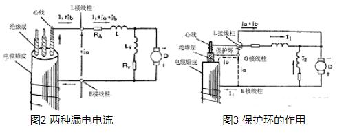 b也会经L接线柱流入电流线圈La里,产生一定的误差。有了保护环G以后,由于它和发电机的负极相连(注意保护环与L接线柱之间彼此是绝缘的),如图3所示,两处的漏电电流