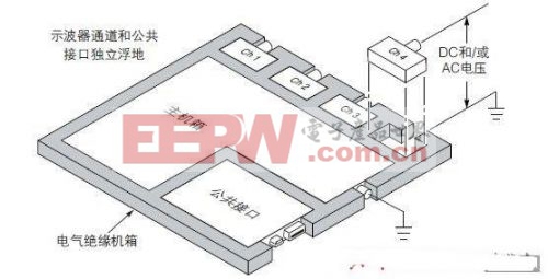 “浮地”参考地电平示波器把所有可以接触的相同电压的金属(包括机箱、机壳和连接器)作为探头参考引线连接的测试点。