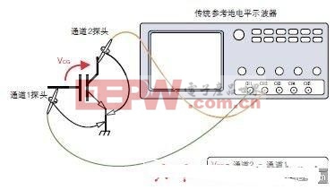 不应该使用传统无源探头,直接在参考地电平的示波器上进行浮地测量。视流经参考引线的电流数量,传统无源探头会开始变热;在电流足够高时,它会类似熔丝那样熔化断开。