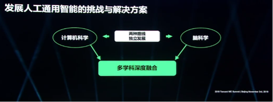 发展类脑计算和人工通用智能真正的挑既不是科学,也不是技术,而是我们的学科分布,目前的学科分布使得我们没有合适的人来做这方面的研究,而且脑科学和计算机科学一个主要是探索自然世界,后者更关注应用。这两个领域有不同的文化、语言,而且目标也不一样,所以多学科融合尤为关键。