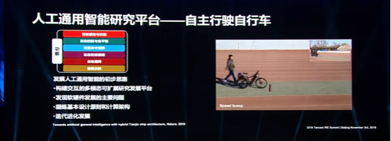 我们的想法是这样,构建一个可以和系统互动的多模态交叉研究平台,我们利用环境变化逼迫这个系统变化,当它变化的时候,我们观察应用这种变化,系统应该遵循的基本原理,从而帮助我们迭代发展,利用一块天机芯片,我们就实现了感知、追踪、过障、避障、自动控制、语音理解、自主决策。