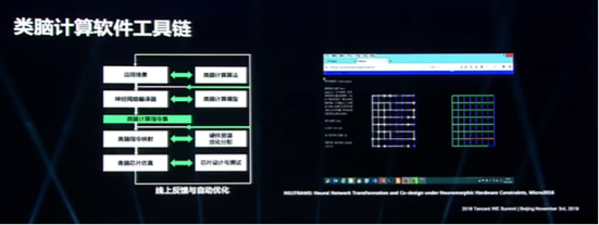 芯片很重要,软件也很重要,因为如果没有软件,应用工程师不愿意做应用软件开发。所以我们自己开发了一个软件工具链,在我们实验室,实际上现在已经搭起了第一代的类脑计算机。