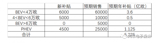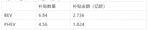 补贴方式:电动车和插电混动车(碳排放量不得超过 50g)的补贴金额分别为 4000 欧元和 3000 欧元,联邦政府和车企分别承担一半,这笔钱是两边共同出资 12 亿欧,而且车价超过 6 万欧元被视为奢侈消费,不得享受补贴