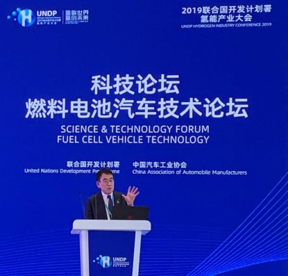 2019年10月27日,2019联合国开发计划署中国氢能产业大会*在中国佛山市召开。日本电产车载事业本部长早舩一弥专务执行董事在此次大会上做了演讲。