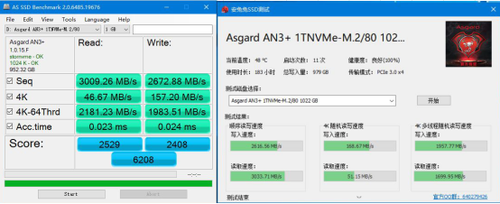 出色的外形与优秀的性能评分相得益彰。阿斯加特AN3+ NVMe SSD兼容PCIE Gen 3X4,可选多种容量500GB/1TB/2TB满足不同用户需求。从上图我们可以看到,阿斯加特AN3+ NVMe SSD性能卓越,AS SSD总得分达6208分,性能直追西数SN750,三星970EVO PRO,是目前最强悍的M.2 NVMe SSD之一。阿斯加特AN3+ NVMe SSD还实现了安全方面的自主可控,性能媲美国外一线品牌,是首款国产自主可控的高端NVMe SSD。