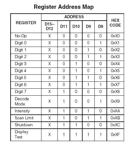 MAX7219有下列几组寄存器:(如图3)