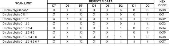 图5 MAX7219的扫描界限控制寄存器