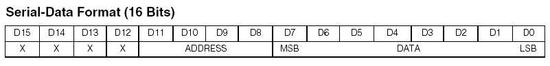 要想与MAX7129通信,首先要先了解MAX7129的控制字。MAX7129的控制字格式如图6。