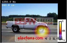 汽车上的很多部件都会产生噪声,包括电机、排气装置、变速器以及轮胎。 标准的通过噪声测试无法识别会造成测试失败的源噪声,因此我们需要一项能够可视化呈现声场的技术,以分辨不同的声源。 在该测试中,我们采用了波束成形,可以看到哪些声源会显著增大整体噪音,并对车辆通过噪声产生影响。