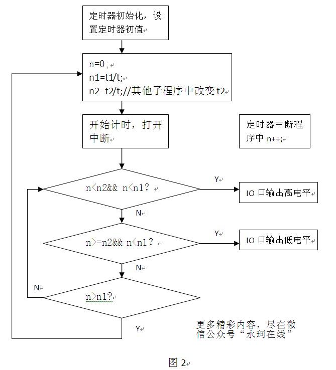 n2=t2/t;//计算一个PWM中高电平时间t2由多少个基准时间//t组成。t2由其他控制算法改变。