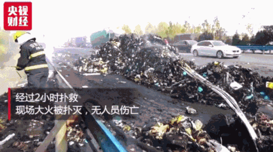 着火的这辆物流车长约15米,车厢内装载13吨包裹,主要有日用品、百货、食用油、纸巾等。经过两小时扑救,现场大火被扑灭,无人员伤亡,但车上的快递几乎全部被烧毁。