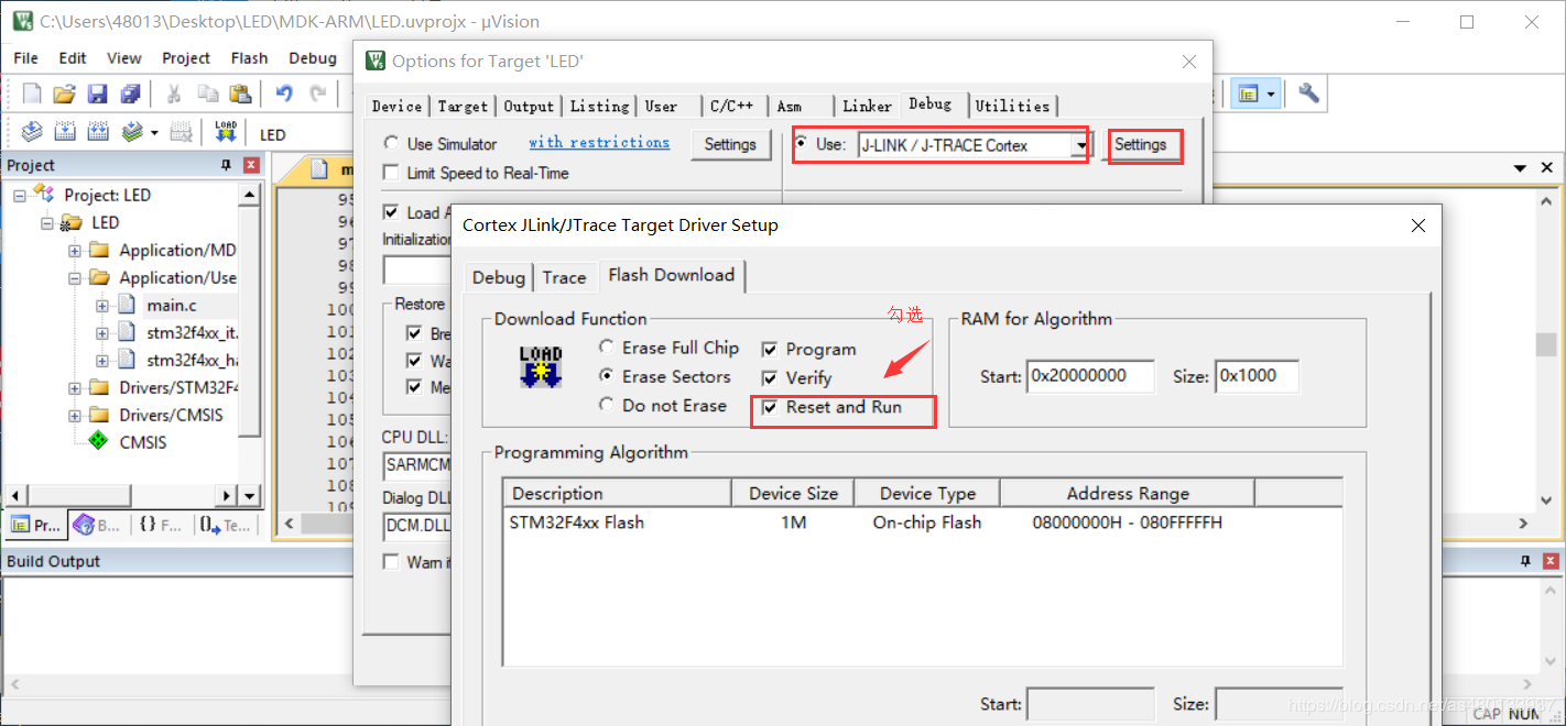 新建的工程所有配置都是默认的 我们需要自行选择下载模式,勾选上下载后复位运行