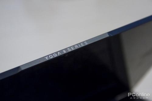 屏幕上边沿正中位置做了略微突起的设计,上面印有“YOGA 9 SERIES”,而凸出来的这一边角会更便于我们进行单手开合屏幕的操作。