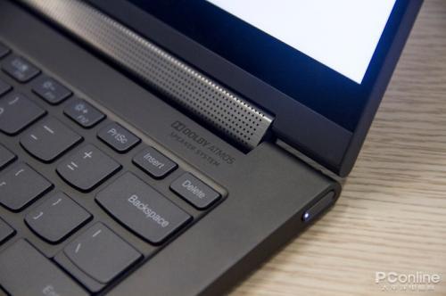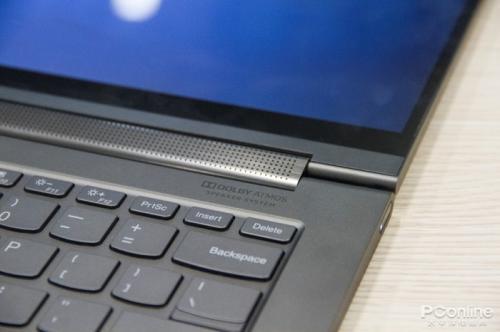 YOGA C940 配备了 4 个扬声器,都经过了杜比认证,其中两个高音扬声器位于转轴处,而低音喇叭位于机身底部。