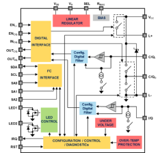 VCC, GND, OUTH, OUTL和I/Q引脚之间的反极性保护是这款芯片的重要功能,是工业传感器管理应用的基本要求。