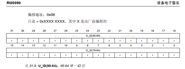 96 位的唯一设备标识符也可以以单字节/半字/字等不同方式读取,然后使用自定义算法连接 起来。