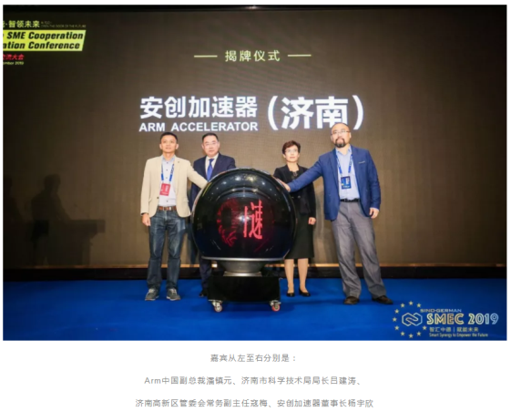 期间在AI分论坛上,聚焦于人工智能和物联网产业的创新创业服务平台“安创加速器”举行揭牌仪式。济南高新区管委会常务副主任寇梅、济南市科学技术局局长吕建涛、Arm中国副总裁潘镇元及安创加速器董事长杨宇欣参加了安创加速器(济南)的揭牌仪式。