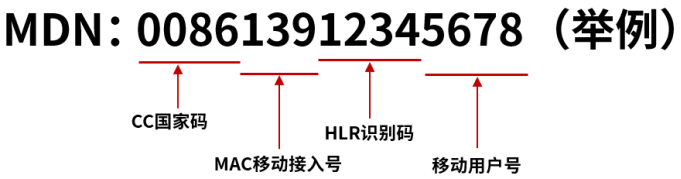 MDN由国家码(CC)、移动接入号(MAC)、HLR识别码、移动用户号共同组成。