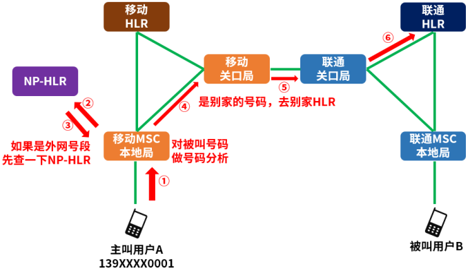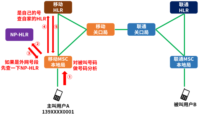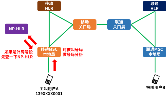 还是举例,139开头的A,拨打138开头的B。B是办理了号码携带的用户,号码虽然是138开头,但不能按中国移动内部呼叫的流程处理,否则就会送错了目的地。
