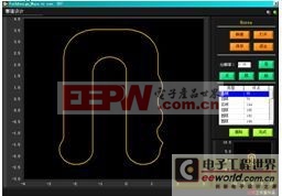 图2是Plastid的赛道设计界面,用户可以使用“点”来精确设定赛道曲线的下一点位置,使用“弧”则可以以圆心坐标、角度来绘制想要得到的弧线,更可以直接采用“手绘”用鼠标在屏幕上绘制赛道或从数据文件中导入曲线。其操作界面友好,修改方便,且易于上手和操作。图2中的赛道即根据韩国汉阳大学2004年智能车大赛采用的赛道设计而成。