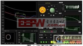 图4为系统动态仿真的界面,使用者在加载完赛道与赛车文件后,即可进行动态的仿真。其中仿真周期表示系统每一次计算的时间,可以根据单片机的运算周期进行设定,但值得一提的是,在仿真过程中,其真实的仿真周期会根据计算机的性能等因素而不同,但其仿真的结果可以保证确实根据该仿真周期计算而得,从而保证其仿真的可靠性。