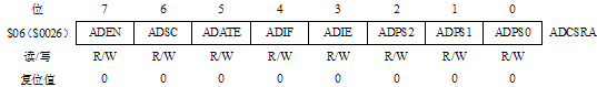 在ADC转换的过程中,ADSC将始终读出为“1”。当转换完成时,它将转变为“0”。强制写入“0”是无效的。