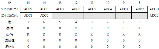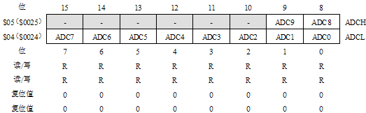 ADC转换结果的读取可设置为左端对齐(LEFT ADJUSTMENT);