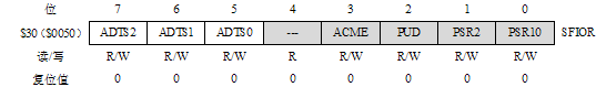 位7..5—ADTS[2:0]:ADC自动转换触发源选择