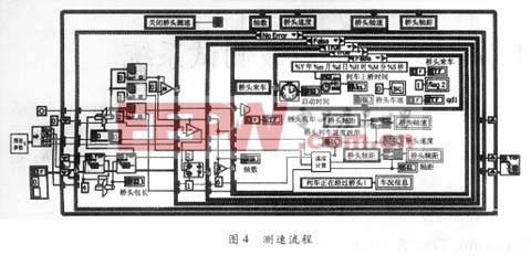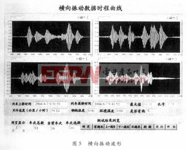 图4为测速流程的框图程序,图5是从数据查询系统调出的某次列车经过时,部分桥梁横向振动波形。