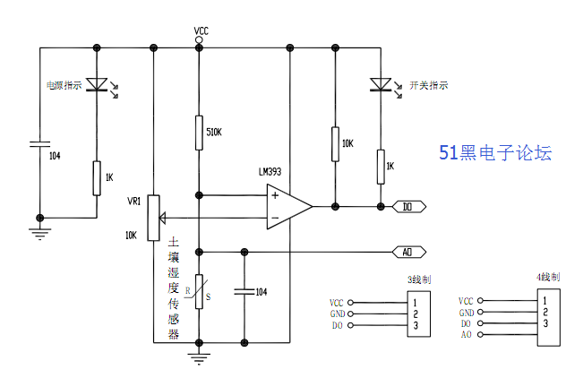 3.数字量输出 D0 可以与单片机直接相连,通过单片机来检测高低电平,由此来检测土壤湿度;