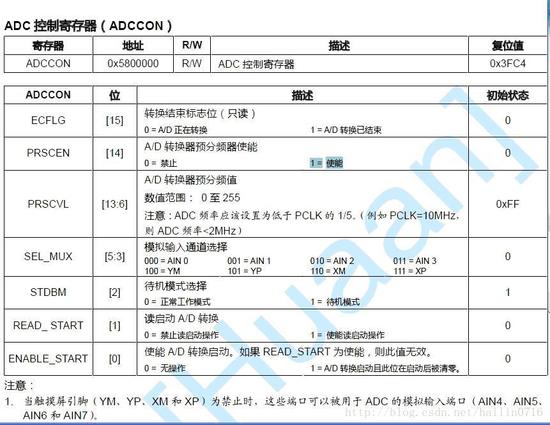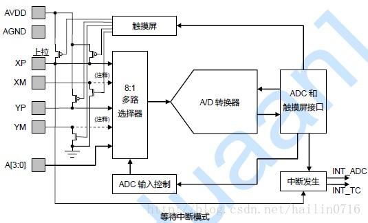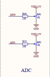 在常见的设计中,如TX2440开发板,一般AIN4、AIN5、AIN6、AIN7被用作了四线电阻触摸的YM、YP、XM、XP通道;剩余的AIN0~3被引出,其中AIN0、AIN1连接采样电路。